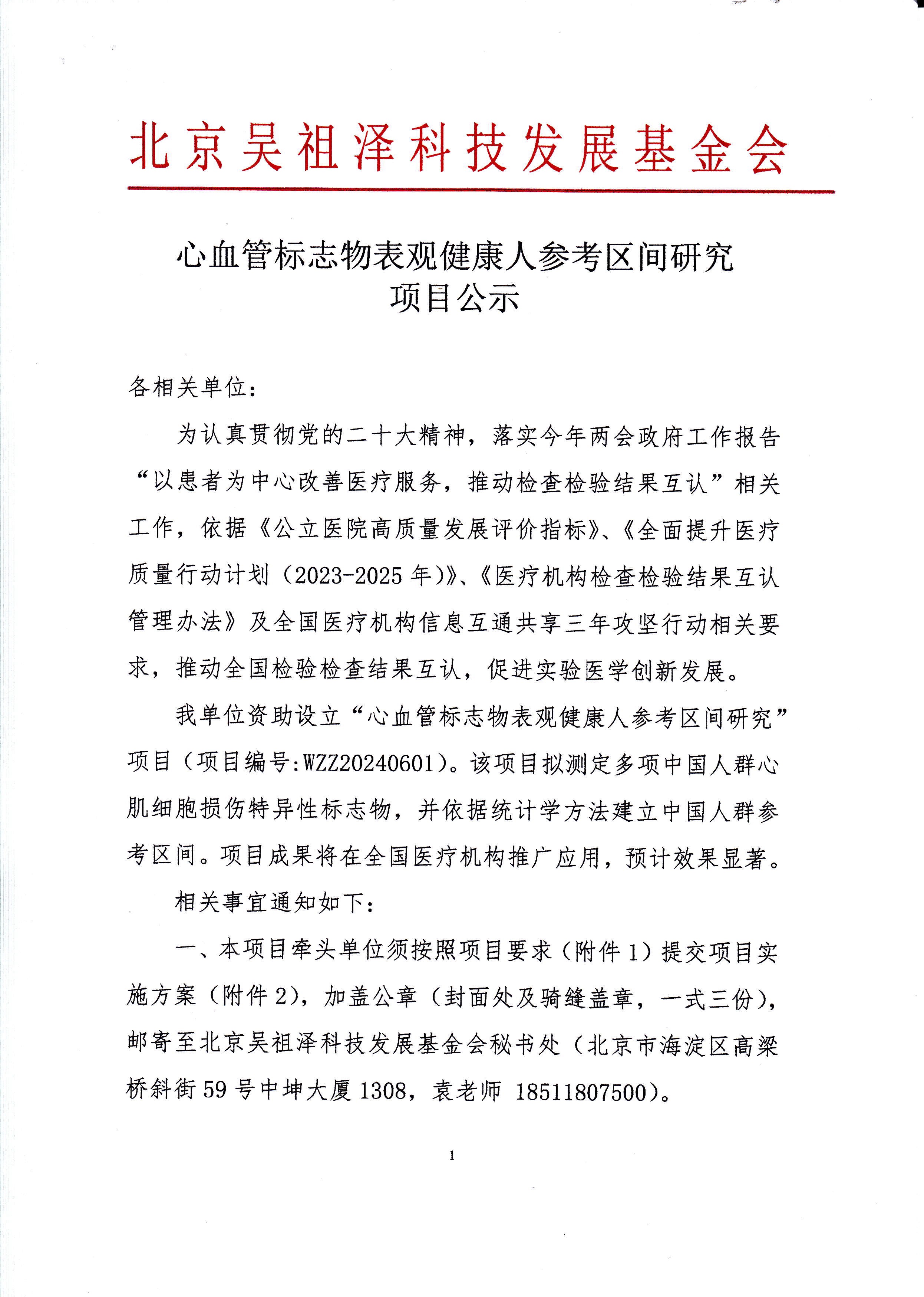 心血管标志物表观健康人参考区间研究项目公示